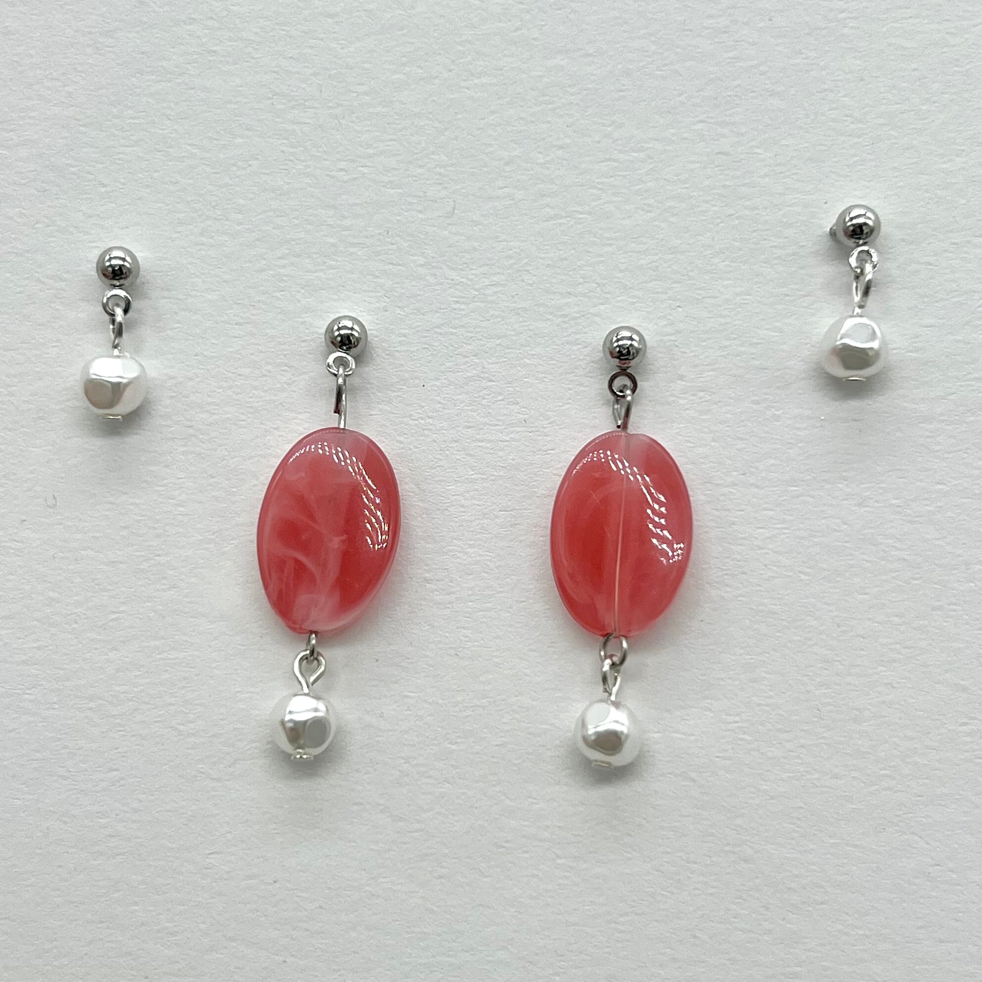 Set of 2 pairs of earrings, made using faux pearls and glass beads. A gorgeous set when worn all together or separately, giving you the option of full glam or a simple pearl look.