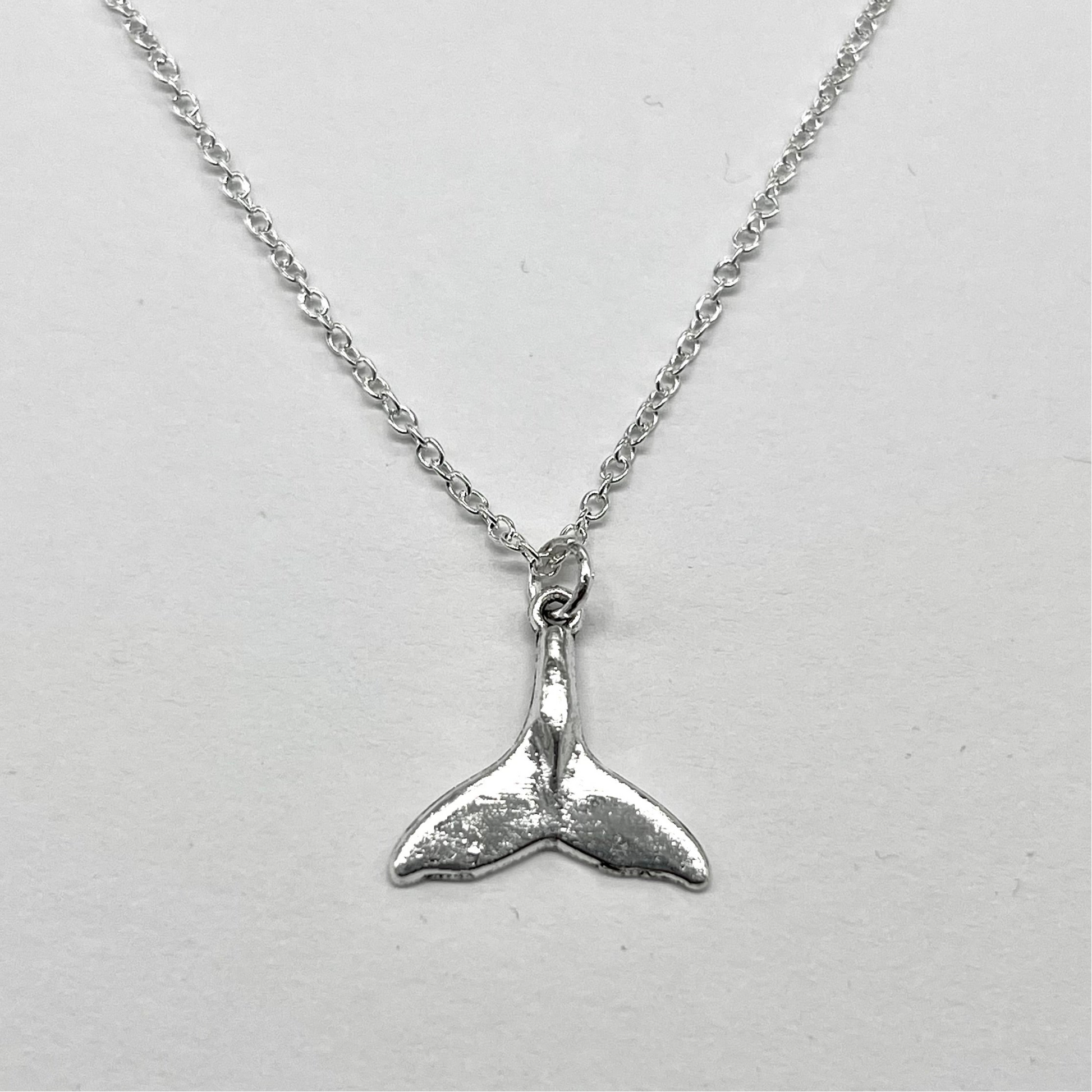 Silver whale tail charm on a sterling silver 925 chain. Length 18 inches, adjustable.